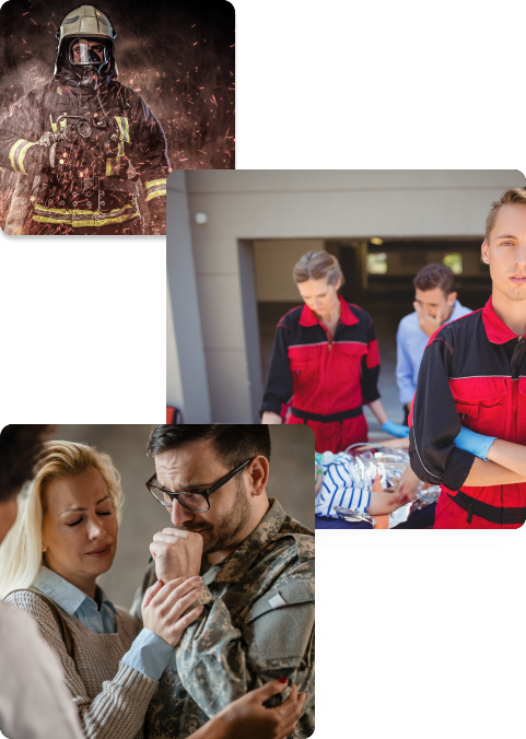 - ratownicy medyczni, policjanci, strażacy i inne służby cywilne, którzy pierwsi docierają na miejsce tragedii,
